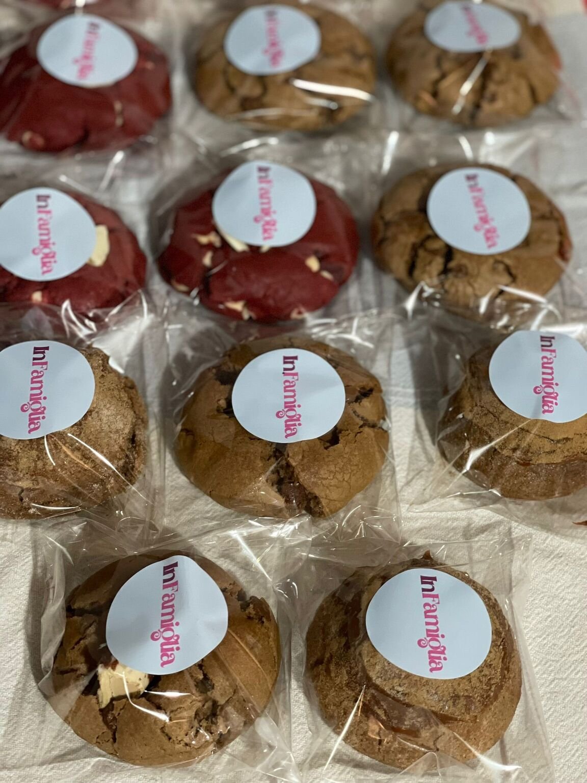 Infamiglia es una propuesta dulce y creativa que ofrece cookies rellenas, alfajores artesanales y productos personalizados para eventos, ideales para regalar o sorprender en cumpleaños, fiestas y celebraciones especiales. Su variedad incluye cookies de 120g rellenas de dulce de leche o chocolate blanco con avellanas, versiones como Red Velvet o Kinder Bueno, además de alfajores individuales o por bandeja, con o sin chispas. También realizan pedidos por mayor para eventos, con productos personalizados en colores, tamaños y sabores. Infamiglia acepta múltiples formas de pago y realiza entregas. Hacé tu pedido al 098 766 650 y disfrutá lo más rico, hecho con amor y pensado para vos.